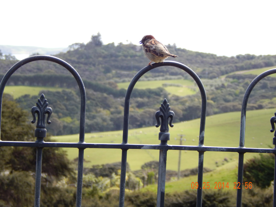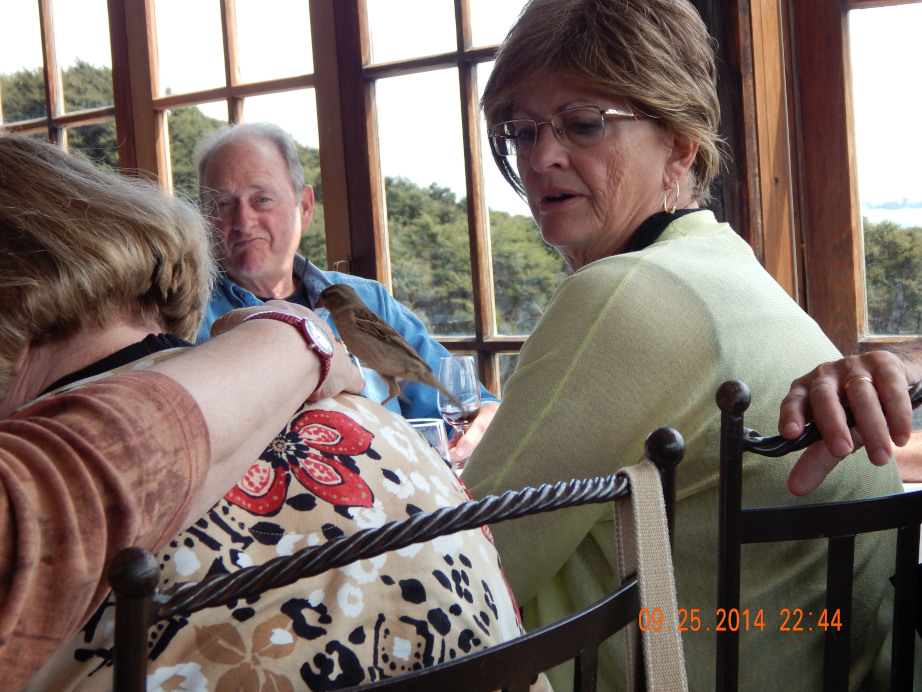A friendly sparrow visits our tables looking for leftovers